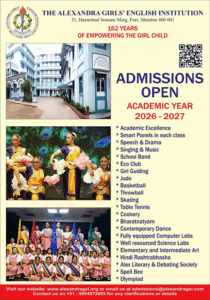 What I am today is thanks to the tireless efforts of my parents and my teachers who helped lay those foundation blocks, every day of my growing up years. I will always be indebted to my parents for the sacrifices they made and my school“The Alexandra Girls English Institution” where I spent most of my childhood. Every teacher from Nursery to Std. X taught us way beyond the syllabus. They taught us how to be disciplined, good humans and stand the test of time. They taught us what’s right and practiced what they preached. I can never forget how proud I was carrying the School flag as the Head Girl. Every achievement since is thanks to what I was taught.I strongly encourage every student of this prestigious institution to dream big and achieve great heights, as they face every challenge in life after a solid foundation developed by our dear AGEI.